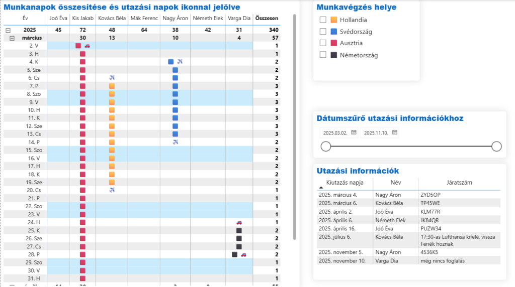 A lenti riportok jellemzően excel adatbázis alapján készültek.